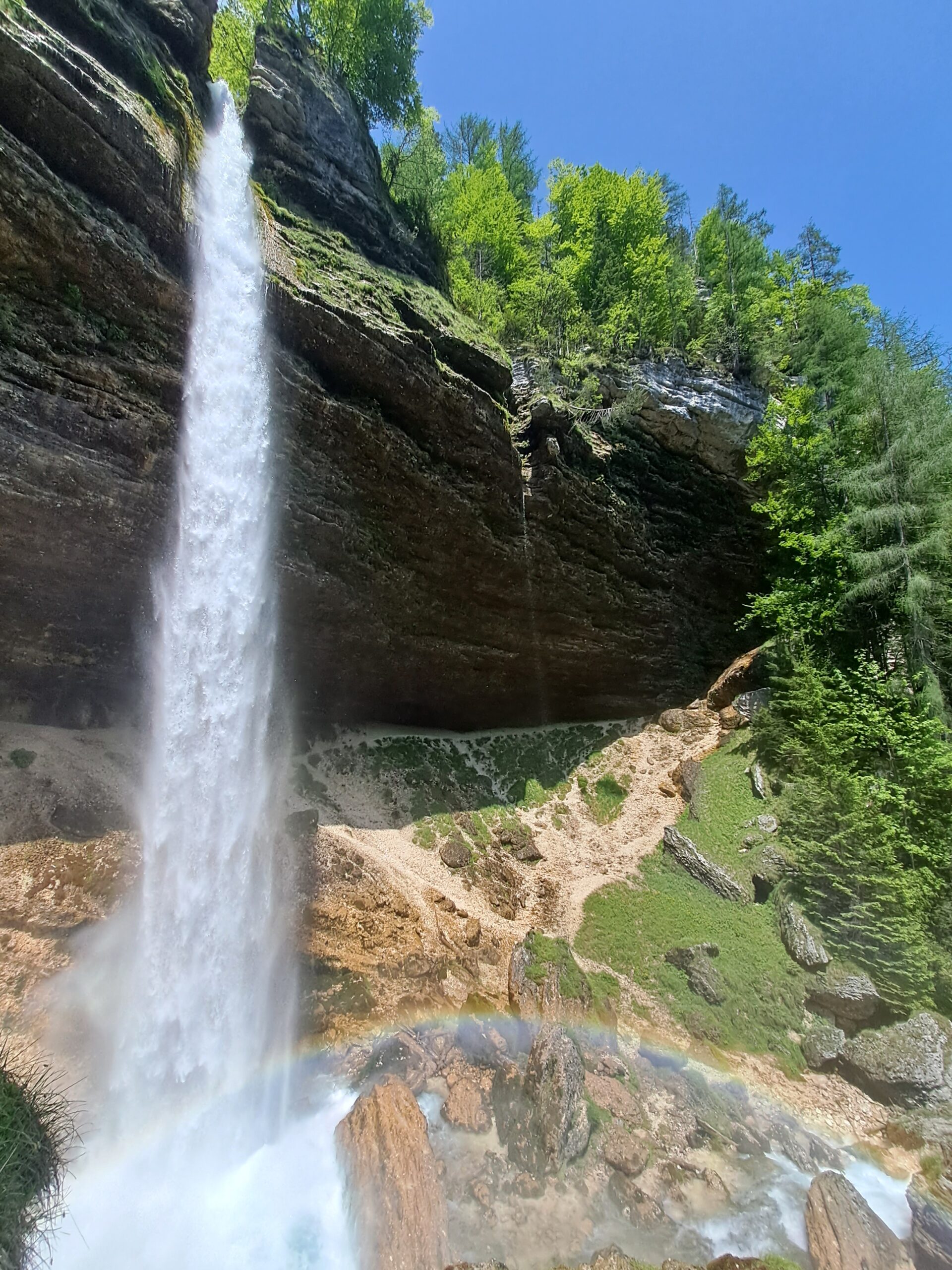 — la montagne, la lumière, l’arc-en-ciel formé par la brume. C’est une des rares cascades qui m’a vraiment marquée.